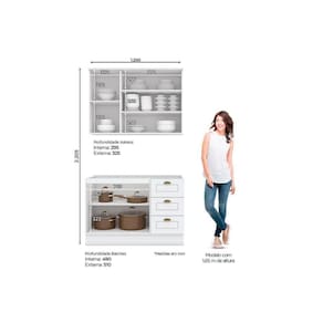Abaixo segue os produtos do KIT: Cozinha Completa Americana 3 Peças (1 Aéreo + 1 Balcão + 1 Complemento) CZ123 Branco - Henn