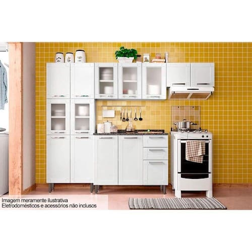 Cozinha Completa Múltipla 4 Peças (2 Armários + 1 Balcão + 1 Paneleiro) C4P75 Branco - Bertolini