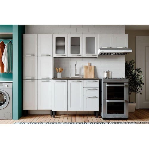 Abaixo segue os produtos do KIT: Cozinha Completa Múltipla 4 Peças (2 Armários + 1 Balcão + 1 Paneleiro) C4P78 Branco - Bertolini