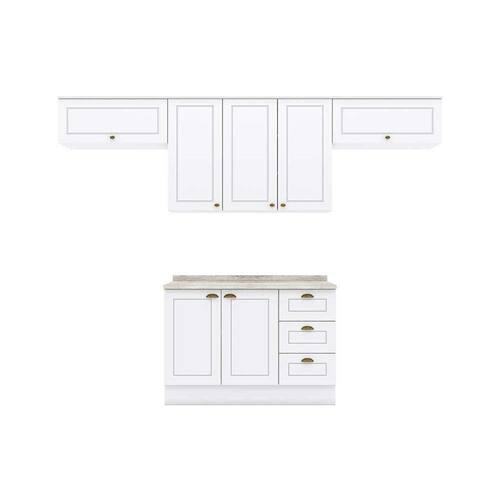 Balcão de Cozinha Americana 2 Portas e 3 Gavetas p/ Pia 120cm S/tampo Branco - Henn