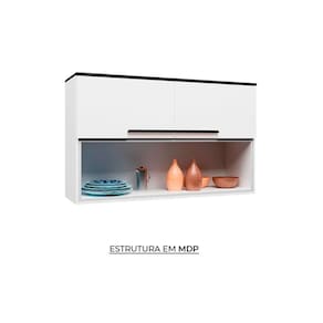 Dimensões(Cm): Comprimento(Profundidade): 35cm x Largura: 120cm x Altura: 73,5cm Material de Estrutura - MDP Tipo de Móvel - Armário Aéreo Tipo de Acabamento da Pintura - Semi Brilho Tipo de Dobradiças - Dobradiças c/ Amortecimento Quantidade de nichos - 1 nicho Diferenciais dos Nichos - Nicho Decorativo Montagem do Produto - Desmontável Garantia - 3 meses