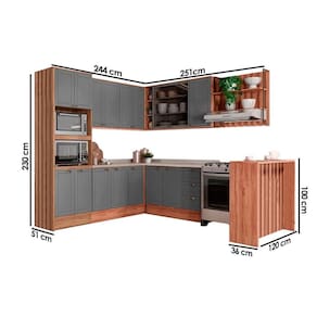 Cozinha Completa Bella 9 Peças (3Aéreos+3Balcões+1TorreQuente+1Ilha+1Complemento) C9P201 Nogal/Cinza - Carraro