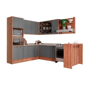 Kit de Cozinha Completa 9 Peças Bella (3Aéreos+3Balcões+1TorreQuente+1Ilha+1Complemento) C9P201 Nogal/Cinza - Carraro - Blush