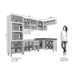 Cozinha Completa Connect 9 Peças (3Aéreos+3Balcões+1Paneleiro+2Complementos) C6P01 Duna/Cristal - Henn