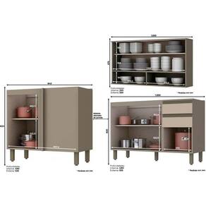 Cozinha Completa Connect 12 Peças (5 Armários + 3 Balcões + 1 Paneleiro + 3 Complementos) C12P01 Duna/Cristal - Henn