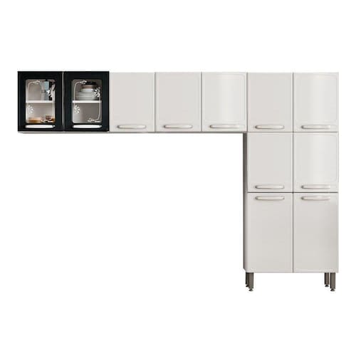 Kit De Cozinha Modulada 3 Peças Evidence (2 Armários + 1 Paneleiro) Cpt52 Branco/Preto - Bertolini