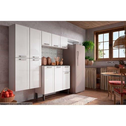 Abaixo segue os produtos do KIT: Cozinha Completa Dona Maria 4 Peças (1 Armário + 1 Balcão + 1 Paneleiro + 1 Complemento) C4P91 Branco - Bertolini