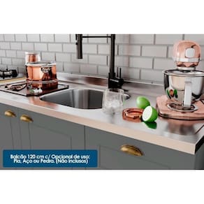 Dimensões(Cm): Comprimento(Profundidade): 120cm x Largura: 51cm x Altura: 82cm Vantagens Extras dos Moveis de Cozinha - Apropriado p/ Uso de Pia - Interior em Trama Tipo de Estrutura do Móvel - 100% MDF Características de móveis - Gabinete s/ Tempo Diferenciais dos Móveis - Desmontável Tipo de Pintura - UV Tipo de Acabamento da Pintura - Fosca Cor Principal - Branco Tipo de puxador - Metal Zamac Quantidade de Portas - 2 Portas de Abrir Quantidade de Gavetas - 3 Diferenciais da Gaveta - c/ Corrediças Telescópicas - c/ Porta Talher Garantia - 3 meses Certificação de Qualidade - Qualidade Aprovada