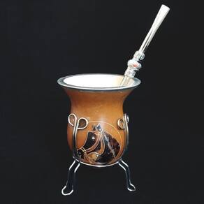 Desfrute seu chimarrão com alta qualidade, sabor e tradição! #Bocal De Alumínio #Cuia De Porongo #Tripé Removível Garantia: 90 dias / Peso: 240g / Cor: Marrom e Alumínio / Ref: 30062 Dimensões aproximadas da Cuia: 10cm (C) x 10cm (L) x 15cm (A) Abertura de Bocal: 8,8cm Base tripé: 10cm Cuidados: Após tomar seu chimarrão, retire a erva mate e lave internamente com água corrente. Guardar em local seco e arejado, em pé, é importante manter a cuia seca; Não lavar com materiais abrasivos. OBS: As cuias podem sofrer variação de medida e cor em função da matéria prima utilizada, o porongo. Material: - Porongo; - Alumínio. Este conjunto para chimarrão e tererê com tripé removível é perfeito para você desfrutar da sua bebida diariamnete. Composto por uma tradicional cuia de porongo natural com bocal de alumínio e tripé móvel, e uma bomba de alumínio material de alta qualidade e durabilidade. É um kit para chimarrão, tererê ou mate. Deguste sua bebida com todo o sabor da tradição.
