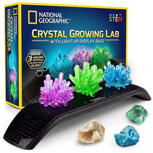 CRESÇA CRISTAIS DE CORES VIBRANTES Cultive cristais em 3 cores incríveis: azul, roxo e verde. Com este experimento científico envolvente e educativo para crianças, a química nunca foi tão divertida e colorida DISPLAY DE LUZ NOTURNA Mostre seus cristais no display iluminado com patente pendente. Com 7 modos de cor única, modo de cor do arco íris e 3 níveis de brilho para escolher, seus tesouros de cristal brilharão KIT DE CIÊNCIA COMPLETO Contém tudo que você precisa Pó de cultivo, pedras de sementes transparentes, câmara de cultivo, display iluminado e instruções fáceis de seguir. Nossa câmara de cultivo exclusivamente flexível permite que você remova facilmente seus cristais para exibição sem danos INICIE UMA COLEÇÃO DE ROCK Este kit vem com 3 espécimes de pedras preciosas reais, incluindo um geodo, fluorita verde e calcita azul, junto com um guia de aprendizagem detalhado explicando como os cristais crescem e muito mais É um excelente presente STEM para meninos e meninas. BRINQUEDOS EDUCATIVOS DE ALTA QUALIDADE Temos orgulho de fabricar brinquedos científicos práticos da mais alta qualidade e todos os nossos produtos são apoiados por um serviço excepcional. Se sua experiência não for excelente, informe nos e consertaremos as coisas Marca: Não Informado
