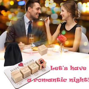 Presentes românticos de aniversário para casais, dados noturnos, ideias de presente para casais, presentes de dia dos namorados para namorada ou namorado, kit portátil de dados de madeira para casais adultos mulheres e homens - Dados divertidos para encontros noturnos: eleve suas noites com nossos dados! Ideal para o Dia dos Namorados, eles adicionam surpresa e aventura à sua noite de encontro. Tem dificuldades na tomada de decisões? Deixe o destino decidir com nossos dados, transformando as escolhas em um jogo divertido. Abrace o desconhecido e embarque em uma aventura romântica e inesquecível com sua pessoa amada. - ? Opções criativas de namoro: apimente suas noites com nossos jogos de dados! Presentes de aniversário românticos para casais, eles oferecem uma variedade de opções para dilemas como "o que comer?" ou "o que fazer?" Cada dado apresenta 6 opções, garantindo transições suaves e datas emocionantes. Chega de momentos estranhos - apenas pura diversão e aventura! - Qualidade premium: feitos de buxo de alta qualidade, nossos dados são duráveis e estáveis. Resistente a rachaduras e desgaste, elas duram uma vida inteira. Os padrões e personagens claros e completos são feitos usando tecnologia de entalhe, garantindo uso e preservação duradouros. Aproveite a combinação perfeita de qualidade e entretenimento com esses dados! - Design exclusivo: nossos dados de data são quadrados, elegantes e charmosos. Cada dado mede 2,5 cm, leve e fácil de transportar, o que o torna o companheiro ideal para noites românticas. Completo com uma bolsa de armazenamento preta, eles estão prontos para ir a qualquer lugar, a qualquer hora, perfeitos para lua de néctar das flores ou escapadas românticas. Seja para um presente de Natal para homens ou um presente especial para sua namorada, estes dados são um presente atencioso e exclusivo para casais. - Idéias de presente para casais com dados para encontros noturnos: Procurando presentes perfeitos para o seu ente querido? Não procure mais do que nossos dados para encontros noturnos! Deixe o destino tomar as rédeas com este conjunto, oferecendo inúmeras opções de comida, atividades e muito mais. Ideal para noites de jogo de casal ou como um presente de Natal para ele ou ela, estes dados garantem que cada momento seja preenchido com surpresas encantadoras e momentos memoráveis.