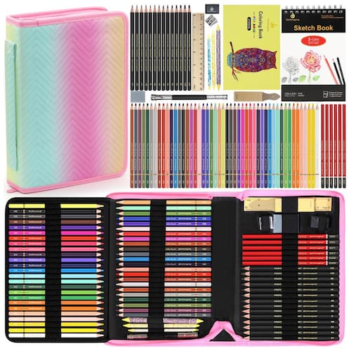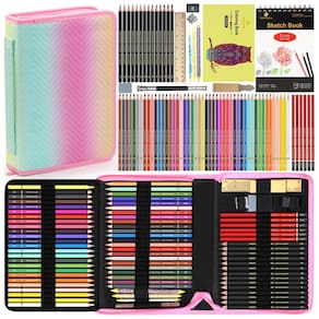 Este kit de desenho Heshengping com 80 peças reúne lápis de cor, lápis grafite, lápis de carvão e acessórios em um estojo com zíper de acabamento em degradê de cores, adequado para adultos iniciantes e praticantes de desenho. O conjunto é indicado para esboço, sombreamento, coloração e estudos em sketchbook, tanto em ambiente interno quanto em uso ao ar livre.