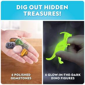 Marca: Blue?Marble Idade recomendada: A partir de 8 anos Tipo de produto: Kit de escavação com blocos-ovo Conteúdo do kit: 12 blocos-ovo de escavação, 12 ferramentas de escavação, 6 figuras de dinossauros que brilham no escuro, 6 gemas verdadeiras, guia educativo em cores Dimensões aproximadas do produto: 31,5?×?28,8?×?5,8?cm (12,4?×?11,33?×?2,28?pol) Peso do pacote: Aproximadamente 1,03?kg (2,27?lb) Manual do usuário: Incluído (em inglês) Destaques: Escavação prática estilo explorador, figuras de dinossauros que brilham no escuro, gemas reais para brincar e aprender, presente STEM ideal para Páscoa ou projeto em sala de aula Marca: Não Informado
