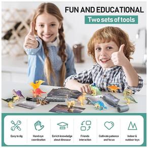 Este brinquedo é perfeito para meninos e meninas com 6 anos ou mais e inclui dois conjuntos de ferramentas para que as crianças possam compartilhar a experiência de escavação com seus pais ou outras pessoas. É um presente especial adequado para os amantes de dinossauros, como presentes de Páscoa ou de aniversário.