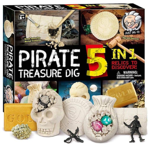 - Várias ocasiões: esses sites de escavação pirata vêm com uma caixa colorida e bem feita, feita de gesso inofensivo, ótimo aniversário, presente de Natal para crianças. Uma adição muito divertida às lembrancinhas da festa pirata! E este kit de escavação para 6 pessoas também é um ótimo brinquedo educativo para a classe. Se seus filhos são fascinados por piratas e você gostaria de um presente para eles, não procure mais, compre esses kits de arqueologia para seus filhos! Existem 5 kits de escavação, eles receberão gemas, ouro de tolo e fósseis de piratas.