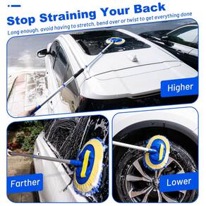 Ordenado Luva 2 em 1 de microfibra de chenille para lavagem de carro com alça longa de liga de alumínio de 157 cm, kit de limpeza de carro, espanador, escova de lavagem de carro - Escova de lavagem de carro de 162 cm com fantástica função de ajuste de comprimento?O esfregão de lavagem de carro tem 4 postes de alumínio e você vai descobrir que eles podem ser montados em 82,8 cm, 117,6 cm ou 157,5 cm usando 2, 3 e 4 polos. Portanto, o comprimento ajustável desta escova de carro para lavagem ajuda você a limpar diferentes alturas (quanto mais alta, mais longe ou a roda inferior), de qualquer maneira, protegendo você de esticar, dobrar ou torcer para fazer tudo. É uma criação legal para fãs de carros! - ?Kit de lavagem de carro esfregão de microfibra com design de conexão resistente? Não há preocupação de que a escova de lavagem de carro com alça longa seja retraída ou esticada à vontade porque cada haste do kit de lavagem de carro usa o método de fixação preso para tornar a haste do equipamento de lavagem do caminhão estável e firme. Além disso, a rotação da cabeça do esfregão de 180° e a alça antiderrapante da escova de limpeza do carro podem controlar facilmente a escova de lavagem do caminhão e ajustar o ângulo para tornar a limpeza mais conveniente. - ??Luva de lavagem de carro 2 em 1 sem arranhões de chenille para uso flexível? Quando o mastro da escova do carro é desmontado, a cabeça do esfregão de limpeza de parede pode ser usada como luva, esponja, pano para facilitar a limpeza do carro. Uma esponja macia para lavagem de carro de forte absorção funciona de forma Ordenado recolher as partículas de sujeira e sujeira, prendendo-as nas fibras da luva de lavagem sem deixar arranhões, fiapos ou redemoinhos para alcançar resultados impressionantes. - ?Kit de limpeza de carro sem ferrugem de material premium? Esta escova de limpeza com cabo longo é feita de liga de alumínio que é dura, firme e difícil de enferrujar. Além disso, quase não há dobra ou quebra da haste durante o uso. Como excelente kit de cuidados com o carro, sinta-se à vontade para usar o esfregão de parede com alça longa em ambientes internos ou externos. - ??Suprimentos de limpeza de carro de ampla aplicação? As luvas de lavagem para lavagem de carro são perfeitas para lavar, secar, encerar, tirar o pó e polir seus veículos ou casa. Você não só pode lavar um carro, caminhão, SUV, motocicleta, trailer, mas é incrível para janelas, poeira, ventiladores de teto, galpões, escorregadores infantis/estruturas externas e acessórios de sua casa! Use-o em qualquer superfície! Tamanho livre serve para todos. Ferramenta de limpeza de para-brisa interior perfeita. Torna a limpeza mais fácil, rápida e prática. - ??Pacote satisfatório e presente ideal? 4 postes de liga de alumínio, 1 cabeça de esfregão na placa de plástico ABS que é fácil de remover e limpar; 1 cabeça de esfregão de microfibra extra de chenille. Se você não sabe que presente dar aos fãs de carros ou entusiastas de carros, basta escolher o kit de lavagem de carros! Temos garantia de 12 meses, sinta-se à vontade para entrar em contato conosco quando houver algum problema de montagem ou uso.