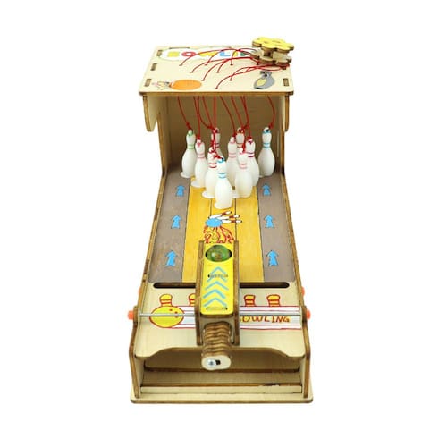Material: Madeira Tamanho: 25 × 10 × 12 cm Peso: Kit científico de boliche DIY de 200 g — Brinquedo de boliche de mesa de madeira projetado para que as crianças construam, brinquem e explorem experimentos científicos por meio de uma divertida interação prática. STEM Learning & Play — Combina conceitos de física como força e movimento com um mini jogo de boliche, tornando o aprendizado divertido e prático. Para crianças de 6 a 12 anos — Adequado para meninos e meninas, ótimo para feiras de ciências, atividades em sala de aula ou brincadeiras educativas entre pais e filhos em casa. Estrutura de madeira durável — Feita de madeira segura e ecológica (25 × 10 × 12 cm, 200 g) com bordas lisas, leve e reutilizável para vários experimentos. Interativo e envolvente — Incentiva o trabalho em equipe, a observação e a resolução de problemas, ao mesmo tempo em que aumenta a criatividade e a coordenação olho-mão.