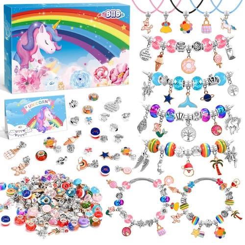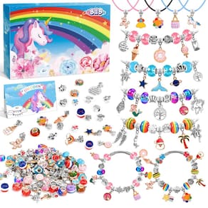 ? [PRESENTES PARA MENINAS ADOLESCENTES]: O kit de fabricação de pulseira de sereia unicórnio BIIB é um presente perfeito para crianças e meninas. Este kit de fabricação de joias vem com 2 correntes de cobra, 2 pulseiras, 18 contas de metal, 24 contas de cristal coloridas, 23 pingentes diferentes e 3 cordões de colar. É ótimo para fazer pulseiras DIY para meninas, ajudando-as a inspirar sua imaginação e criatividade.