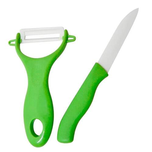 Kit de Faca e Descascador em Cerâmica Verde O Kit Faca e Descascador Cerâmica - Verde é um conjunto prático e resistente para sua cozinha. Composto por uma faca e um descascador em cerâmica verde, esse kit é perfeito para cortar carnes, frutas, legumes e verduras com facilidade e precisão.