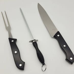 Kit de faca+garfo trinchante+ chaira 3 pcs