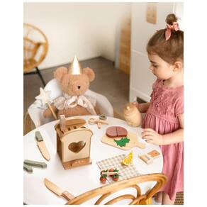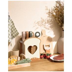 O Conjunto de Facas de Cozinha Infantil ROBUD é o brinquedo perfeito para estimular a imaginação das crianças. Com 16 peças em madeira, incluindo facas de brinquedo, tesouras, descascador e tábua de corte, as crianças podem se divertir como mini chefs, praticando cortes e fatias fictícias. Ideal para brincadeiras individuais ou em grupo, promovendo a criatividade e o trabalho em equipe. Além disso, acompanha uma seleção realista de alimentos de brincar, como pão, bife, limão, tomate cereja, aspargo e folha de salsa, proporcionando uma introdução envolvente à preparação de refeições e conceitos básicos de cozinha. Com um design inspirado na metodologia Montessori, o conjunto estimula a coordenação motora e habilidades manuais, despertando o interesse precoce pela culinária por meio de brincadeiras divertidas e práticas. Feito em madeira premium com acabamento suave, o conjunto garante durabilidade e segurança para a brincadeira das crianças. Um presente atencioso para os jovens chefs, combinando diversão e aprendizado em um único e encantador conjunto.