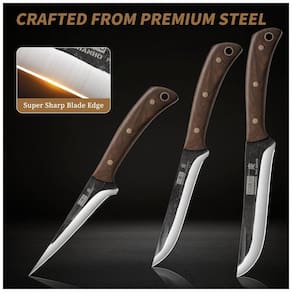 Este versátil e funcional conjunto de facas para açougueiro inclui uma faca de desossar de 6,7 polegadas, uma faca de dividir de 6 polegadas e uma faca de cortar legumes de 5 polegadas. Estas facas afiadas serão uma adição indispensável para qualquer cozinha! Encare desafios culinários como fatiar, picar, cortar bifes, legumes e frutas, sendo adequadas para churrascos, trilhas e acampamentos. Cada faca para cortar carne é feita de aço inoxidável de alto carbono premium, com dureza de 58 Rockwell, garantindo resistência e nitidez excepcionais. O cabo de madeira de nogueira durável é antiderrapante e equilibrado, garantindo estabilidade e conforto durante o uso. Com lâmina super afiada afiada a 16 graus por lado, estas facas oferecem desempenho de corte máximo e durabilidade, sendo ideais tanto para cozinheiros domésticos quanto para chefs profissionais. O conjunto de facas de açougueiro japonês vem em uma bela caixa de presente, sendo perfeito para presentear em diferentes ocasiões como Dia das Mães, Dia dos Pais, Natal, entre outros.
