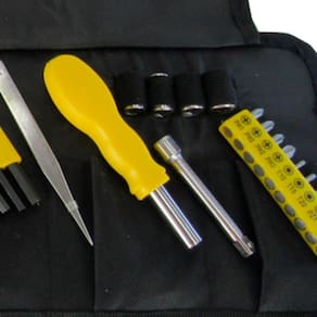 Jogo de ferramentas com 32 peças é ideal para diversas aplicações diárias, além de ser extremamente útil para trabalhos profissionais ou hobby, seja na oficina, ou na própria residência.