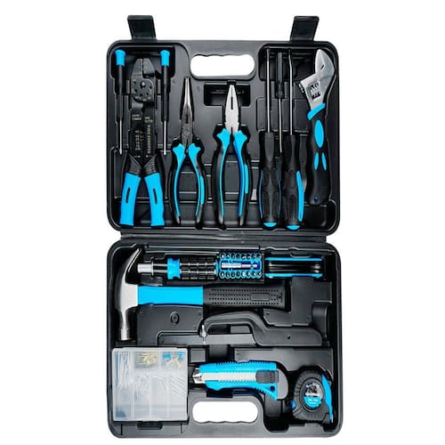 Kit de ferramentas manuais para manutenções e instalações residenciais.