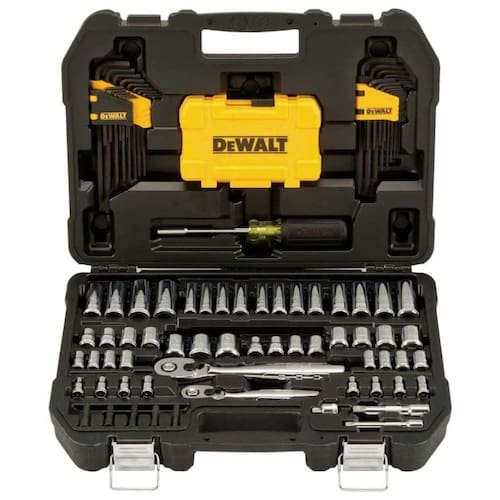 Junta deslizante, junta de ranhura e alicate de ponta longa vêm com o kit de ferramentas de soquete para maior acesso em várias situações. Martelo de fibra de vidro para maior conforto e diminuição da fadiga. Chave de fenda bimaterial para maior conforto e diminuição da fadiga. Acabamento totalmente polido com grandes marcações para resistência à corrosão e fácil identificação. A caixa durável moldada por sopro é móvel e fácil de guardar Marca: Não Informado
