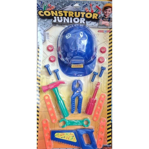 O Kit Construtor Junior contém todas as ferramentas que você precisa para Brincar de Construtor O Kit acompanha diversas ferramentas, capacete e acessórios que vão tornar a sua brincadeira muito mais divertida Composição da Embalagem: Kit Cartela com Capacete, Ferramentas e outras Acessórios confeccionados em plástico Medidas: 69 x 33 x 10 cm Idade: + 3 anos Anvisa/9 Marca: Pica Pau Homologação Inmetro: CE-BRI/IQB 005608 54346/21-021 Ean: 7795835631071