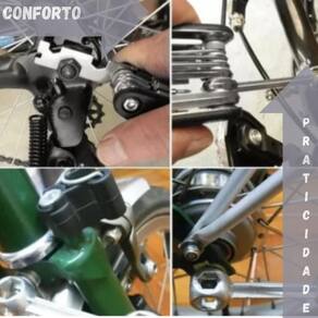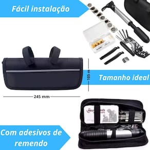Kit de ferramentas de bicicleta - ideal para ciclistas Descrição do anúncio: Prepare-se para aventuras sem preocupações com o bolsa kit de ferramentas para bicicleta. Este kit completo e compacto é essencial para ciclistas que valorizam a preparação e segurança durante seus passeios. Com uma variedade de ferramentas essenciais, você estará pronto para resolver qualquer contratempo rapidamente e continuar sua jornada sem interrupções. Conteúdo da embalagem: O kit inclui: Bolsa resistente para quadro de bicicleta com chaves multifunções fenda, philips, allen Soquete sextavado 8 / 9 / 10mm Chave de boca 8 / 10 / 15mm Bomba de ar em alumínio com adaptador para bico Kit reparo de pneus 8 reparos, cola, lixa e manual de instrução Espátulas alavancas de remoção de pneu Estojo protetor dimensões aproximadas 22x10x6cm Características: Bolsa prática e resistente para transporte seguro das ferramentas. Kit completo para reparos rápidos na bicicleta, incluindo chaves, bomba de ar, remendos de pneu e mais. Ferramentas de alta qualidade e durabilidade, garantindo desempenho confiável. Espaço organizado na bolsa para fácil acesso e armazenamento das ferramentas. Especificações: Bolsa para quadro de bicicleta com dimensões aproximadas de 22x10x6cm. Material das ferramentas: metal duro aço inox para chaves . Bomba de ar em alumínio com adaptador para bico fino e normal. Espátulas alavancas de remoção de pneu são de plástico resistente. Principais perguntas sobre o produto e respostas: Essa bomba da pra usar no bico fino e normal - sim, acompanha um adaptador para a bomba. As espátulas são de plástico ou alumínio - são de plástico. O metal da chave é frágil - as chaves são de metal duro, aço inox, podendo ser usadas diversas vezes sem deformidades. Este bolsa kit de ferramentas para bicicleta é a escolha ideal para ciclistas que desejam estar preparados para qualquer eventualidade durante suas aventuras, garantindo praticidade e eficiência nos reparos. Marca: AL