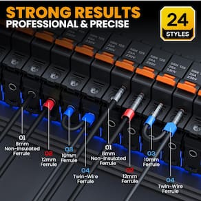 SOMELINE Kit de ferramentas de crimpagem de virola, alicate de crimpagem de virola hexagonal (AWG 24-8), com 24 tamanhos de virolas isoladas e ponteiras duplas isoladas, alicate de crimpagem e kit de - Ferramentas de crimpagem profissionais: o alicate de crimpagem adota um mecanismo de catraca de alta eficiência e matrizes de crimpagem de nível profissional. Possui força de crimpagem ajustável e alavanca de liberação rápida. Alça ergonômica antiderrapante. O descascador de fios multifuncional pode ser utilizado para descascar e cortar fios, a faixa de decapagem é AWG 24-10, proporcionando um serviço perfeito para os conectores que você comprou - Ferramenta de crimpagem hexagonal: o método de crimpagem é a crimpagem hexagonal, que é mais forte para terminais pequenos e mais adequada para equipamentos elétricos com superfícies de contato redondas. Adequado para ponteiras na faixa AWG 24-8 - 24 tamanhos: 1415 terminais de virola, incluindo ponteira isolada e virola dupla isolada, adequada para fios AWG24-8. Quantidade suficiente e comprimentos diferentes podem atender a todas as suas necessidades. Amplamente utilizado em várias ocasiões - Material de alta qualidade: o kit de ponteiras de arame é feito de cobre estanhado de alta qualidade e mangas isolantes de nylon para garantir excelente condutividade elétrica e alta resistência à corrosão. A bainha de nylon tem as características de isolamento e retardador de chama, que é seguro e confiável - Kit portátil: caixa de armazenamento portátil de camada dupla projetada exclusivamente para facilitar o transporte e organização, garantindo que as ferramentas sejam mantidas limpas e acessíveis, tornando-a ideal para técnicos profissionais e entusiastas de bricolage em casa
