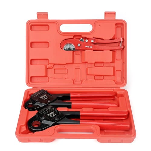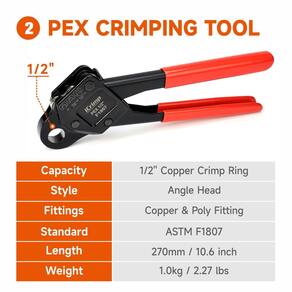 Ferramenta de crimpagem PEX - Kit de ferramentas de crimpagem PEX de 3 peças projetado para crimpar anéis de crimpagem de cobre de 1/2 polegada e 10.2 cm no lugar com acessórios de crimpagem PEX-b. - crimpadores PEX de cabeça angular dimensionados em 1/5.1 cm e 3/10.2 cm com design de ângulo compacto que permite que você trabalhe em espaços apertados. Calibre ir/no-go incluído para verificar se há conexões seguras. - O cortador de tubos PEX corta tubos PEX de 1/20.3 cm a 2.5 cm como manteiga, tornando a aresta de corte uniforme e sem rebarbas. - A ação de alternância exclusiva permite crimpagem com uma mão. Excelente escolha sempre que o espaço for um desafio. - Atende ao padrão ASTM F1807.