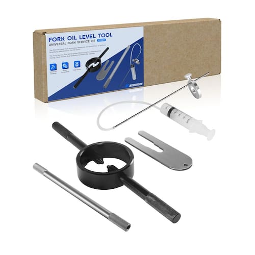 - O que está incluído: O kit de ferramentas de compressor de mola de garfo de motocicleta tem todas as ferramentas essenciais necessárias para manutenção de garfos de nível : 1 ferramenta de nível de óleo de garfo, 1 ferramenta de sangramento de haste amortecedora, 1 ferramenta de compressão de mola de garfo.