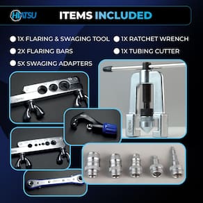 Crie juntas e conexões impecáveis com o kit de ferramentas HIATSU Flaring and Swagging, seu parceiro em tarefas de HVAC e encanamento. Os adaptadores e o cone de aço cromado oferecem durabilidade ideal, enquanto a ferramenta de aço tratada termicamente garante longevidade. Eficientes e precisas, essas ferramentas de alargamento para tubos de cobre são uma prova de habilidade especializada, atendendo tanto a novatos quanto a técnicos experientes.