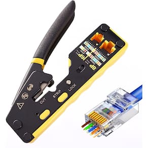 Nosso kit de ferramentas de crimpagem Gaobige Professional Pass Through RJ45 é a nossa melhor escolha para fazermos conectores de passagem de cabo Cat6/Cat6A/Cat5/Cat5e rj45 ou conectores padrão, vem com uma ferramenta de crimpagem de passagem Cat6A/Cat6/Cat5e/Cat5 premium e de longa duração; rastreador de fios; 1 descascador de fio de rede; corte de fio. ter, alguns Cat6 Conectores de passagem; 1 chave de fenda cruzada. Características: Conjunto profissional de ferramentas de crimpagem RJ45 para profissionais e amadores; Design exclusivo Cat6/Cat6A/Cat5e/Cat5 ferramenta de crimpagem; Fácil de manusear e de longa duração; Pass Thorugh RJ45 Crimng Tool pode cortar, tirar, frisar Rastreador de fios multifuncional com rastreamento de fio e função de teste de rede e telefone Ferramenta de perfuração 110/88: aderência confortável que é fácil de manusear. - Kit profissional de ferramentas de crimpagem RJ45 com estojo resistente de transporte: Este kit de ferramentas de rede profissional é transportado com uma capa de qualidade premium, leve e resistente, todas essas ferramentas podem ser bem colocadas neste estojo; estojo portátil e conveniente para transportar em qualquer lugar: podemos usá-lo em casa, escritório, engenharia, sala de máquinas, cabeamento de rede - Kit de ferramentas de rede profissional para profissionais e amadores: vem com uma capa resistente com ferramenta de crimpagem de passagem Cat6A/Cat6/Cat5e/Cat5 premium e de longa duração; rastreador de fios; 1 descascador de fios de rede; cortador de fio, alguns conectores passa-a-passo Cat6; 1 chave de fenda cruzada - Pass Thorugh RJ45 Crimng Tool Can Cut, Strip, Crimp: Este crimpador de passagem rj45 não só pode cortar fios, cabos de tira, mas também pode crimpar conectores de passagem rj45 e conectores regulares rj45; rápido e confiável; também pode crimpar conectores RJ11 RJ12 6P. Perfeito para cabos cat5 cat5e cat6 cat6A. Fácil de usar - Rastreador de fios multifuncional com rastreamento de fio e função de teste de linha de rede e telefone: Função de rastreamento de fio: rápido para localizar o ponto de interrupção, encontrar fio em todos os tipos de switch Ethernet operacional conectado/roteador/terminal de PC. Perfeito para rastrear RJ11, RJ45, cabos ou outros fios de metal (via adaptador); Função de teste de rede e linha telefônica: o localizador de linha testa o status de conexão física do cabo de rede, como circuito aberto, conexão curta, conexão incorreta e conexão reversa - Ferramenta de perfuração 110/88: aderência confortável que é fácil de manusear, lâminas precisas são intercambiáveis e reversíveis entre os padrões 110 e 88. Insere e corta terminações em uma operação simples para cabo de rede Cat6a/Cat6/Cat5e/Cat5