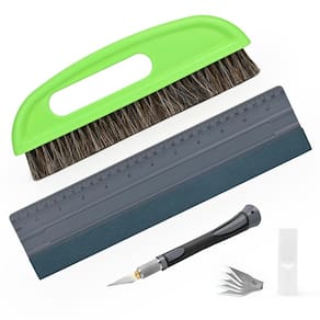 Kit de ferramentas de alisamento de papel de parede Ferramentas de papel de parede para descascar e colar papel de contato pendurado vinil backsplash película de janela - Kit de ferramentas de suavização de papel de parede versátil: adequado para aplicação de todos os tipos de papel de parede, ajuda você na aplicação de papel de parede, aparar teto, projetos de madeira ou rodapé, envoltório de vinil, película de janela ou filme de vidro - Pincel de alisamento de papel de parede de 25 cm: o pincel de papel de parede verde tem uma alça ergonomicamente projetada e uma grande quantidade de cerdas, mesmo em espessura e confortável de usar, o que é um bom ajudante para sua construção. E a alça pode ser pendurada para economizar mais espaço quando o trabalho estiver concluído. - Escova alisadora de revestimento de parede com ampla aplicação: Com suas cerdas largas e resistentes, cobre rapidamente grandes superfícies, tornando a remoção de vincos sem esforço e eficiente. Ideal para escovar paredes e alisar papel de parede, também adequado para remover sujeira antes do papel de parede. - Rodo de feltro grande para vinil e papel de parede: flexível e plano de vinil/papéis de parede e evita bolhas de ar rapidamente. O rodo de papel de parede tem diretrizes de medição em centímetros e centímetros, fácil de usar e economiza seu tempo. - Faca artesanal de precisão com lâminas extras de 5 peças: facas artesanais com design ergonômico e superfície de aderência confortável, e seu peso é equilibrado para excelente controle. Esta faca leve e manobrável é perfeita para cortes detalhados.