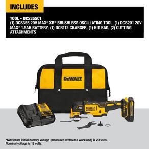 DEWALT Kit de ferramentas oscilantes sem escovas DCS355C1 20V Max XR - O gatilho de velocidade variável de aderência dupla dá aos usuários a melhor velocidade e controle de aplicação - Luz LED brilhante ilumina superfícies de trabalho escuras para um corte preciso - Adaptador universal de acessórios para uso com a maioria das marcas de acessórios de ferramentas oscilantes - Parte do sistema 20V MAX