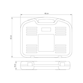 Maleta plástica para facilitar o armazenamento e transporte.