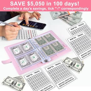 Economize 5050 em 100 dias - Quer economizar dinheiro, mas é difícil se empolgar com isso? Este fichário de 100 envelopes para economizar dinheiro torna divertido dedicar mais dinheiro à economia! Simplesmente colocando uma certa quantia em dinheiro em um envelope todos os dias, você pode reservar mais de $5.000 em 100 dias, proporcionando uma grande sensação de realização e satisfação de economizar uma grande quantia em um curto período de tempo, tornando a economia mais agradável e desafiadora.