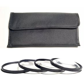 Conjunto de 04 lentes Close-up para fotografica Macro Reduz a distância mínima de foco da sua lente. KIT contém lentes +1, +2, +4 e +10 que podem ser usadas individualmente ou combinadas entre si para obter maior aproximação conforme a necessidade devido à curvatura, as lentes +4 e +10 não permitem que sejam rosqueadas outras lentes sobre elas. Mas estas podem ser usadas em conjunto com as +1 e +2 .