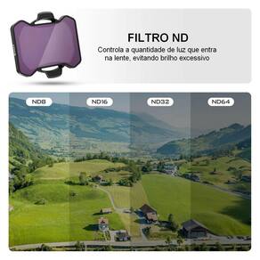 Kit de filtros nd8/16/32/64 freewell para drone dji avata 2 Kit de filtros nd8/16/32/64 freewell para drone dji avata 2 Capture imagens impressionantes e nítidas sob condições de muita luz com o kit de filtros nd8, nd16, nd32 e nd64 da freewell, projetados especificamente para o drone dji avata 2. Perfeitamente combinados para caber no avata 2, esses filtros garantem instalação e remoção sem esforço, mantendo o design elegante e a funcionalidade do drone. Obtenha qualidade cinematográfica em seus vídeos com velocidades de obturador reduzidas, brilho minimizado e precisão de cores aprimorada, graças ao vidro óptico de alta qualidade. Projetados para serem leves, esses filtros nd preservam o equilíbrio e a aerodinâmica do avata 2, garantindo voos ágeis e ininterruptos. Construídos para durar e resistir a arranhões, esses filtros vêm com um estojo protetor, tornando-os fáceis de transportar e trocar em qualquer aventura. Para o passo a passo da instalação e remoção, vide as imagens do produto. Filtro nd8: reduz a luz em 3 f-stops para uso em condições de luz parcialmente nublada durante o dia Filtro nd16: reduz a luz em 4 f-stops para uso em condições de luz durante o dia Filtro nd32: reduz a luz em 5 f-stops para condições ensolaradas e luminosas durante o dia; cria um desfoque de movimento natural Filtro nd64: reduz a luz em 6 f-stops para uso em condições muito ensolaradas e luminosas durante o dia Importante: o filtro não é compatível com o dji avata, apenas com dji avata 2 Principais vantagens: - vidro óptico multicamadas - quatro filtros de densidade neutra - construção leve para não sobrecarregar o gimbal - para diversos cenários de filmagem durante o dia - à prova d'água, à prova de poeira, resistente a arranhões Dados técnicos: Marca: freewell Modelo: fw-dav2-std Material: vidro óptico Tipo: nd Graduação: nd8, nd16, nd32 e nd64 Peso: 1,2g cada Compatibilidade: Compatível com drone dji avata 2 não compatível com dji avata Itens inclusos: 1x filtro nd8 1x filtro nd16 1x filtro nd32 1x filtro nd64 1x estojo para transporte Drone não incluso Imagens meramente ilustrativas Garantia de 90 dias após o recebimento do produto Esta garantia é válida para todo o território nacional, e ela cobre defeitos de fabricação. Para maiores informações consulte o site do fabricante ou contate-nos pelos nossos canais de atendimento.