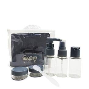 DESCRIÇÃO Este kit de 7 peças é ideal para transportar seus produtos de forma segura e prática durante suas viagens. Com sua embalagem impermeável, o kit não permite vazamentos, garantindo a segurança no transporte dos líquidos. Pelo tamanho reduzido dos frascos, é fácil encaixa-lo em qualquer lugar de sua mala e pela variedade dos potes, é possível armazenar qualquer tipo de produto.