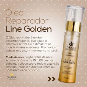 O pó descolorante platine precision white abre até 10 tons e proporciona um resultado uniforme, proteção, hidratação, sedosidade e brilho. Modo de usar: acrescente a medida desejada do pó descolorante em um recipiente não metálico. Adicione o oxidante aos poucos e misture até formar um creme homogêneo, sempre na proporção 1: 2 uma medida de pó para duas medidas de ox . Siga rigorosamente as instruções de uso e faças testes de toque e mechas antes de aplicar. Após o término do tempo de ação, enxágue bem com água morna e lave os cabelos como de costume. Hidratar para melhor resultado. Teste de mecha: separe uma mecha fina do alto da cabeça, misture um pouco do produto e aplique na mecha, deixando o tempo de ação indicado e então a lave. Respeite a proporção utilizada na prova do toque. Se o cabelo ficar quebradiço ou houver aquecimento, é sinal de que o seu cabelo não se encontra em condições para o uso do produto. Atenção não utilize água oxigenada acima de 13 volumes para clareamento de pelos do corpo sem proteção prévia da pele.315844/2018-31 - a oxidante estabilizada de 30 volumes da dyusar cosméticos, possui fórmula estabilizada, cremosa e perfumada e proporciona uniformidade e brilho ao resultado. Observação: usar luvas apropriadas. Respeitar o tempo de pausa. Respeitar os oxidantes recomendados. Não utilizar ferramentas metálicas. Não deixar escorrer o produto no couro cabeludo. Tempo de uso: até 50 minutos. Este produto deve ser utilizado apenas por um cabeleireiro. Modo de uso: misturar a emulsão oxidante com a tintura ou descolorante, conforme as proporções de diluição aconselhadas para cada tipo de produto.775961/2020-74 - o shampoo ouro line golden dyusar cosméticos limpa suavemente os fios deixando os cabelos fortalecidos e revitalizados. Modo de usar: aplique sobre os cabelos molhados massageando bem até formar espuma. Enxague e se necessário repita a aplicação.2749412018-86 - a máscara hidratante line golden dyusar cosméticos é uma máscara capilar que protege a fibra capilar, recupera a integridade dos fios e promove maciez e brilho intenso ao cabelo. Modo de usar: após lavar os cabelos, aplique o produto sobre toda a extensão dos fios. Massageie e deixe agir por aproximadamente 7 minutos. Enxágue bem.274923/2018-84 - o óleo reparador dyusar line golden é um óleo capilar que proporciona maciez e repara as pontas duplas, deixando os cabelos livres do frizz. Modo de usar: agite antes de usar. A uma distância de 15 a 20 cm dos cabelos, aplique sobre toda a extensão dos fios. Pode ser utilizado antes ou após escova ou prancha.274897/2018-94 Marca: Não Informado Ean: 7792559074016