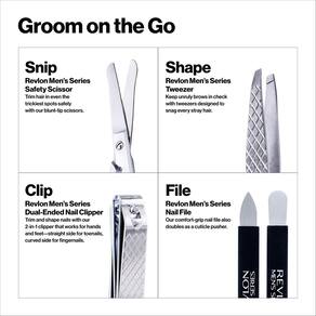 Kit de higiene masculino Revlon, cortador de unhas, tesoura de segurança, lixa de unhas e pinça, ferramentas de depilação de alta precisão, aço inoxidável (pacote com 1) - Projetado especificamente para homens, nosso kit de limpeza elegante e portátil inclui ferramentas de aço inoxidável feitas para oferecer resistência e durabilidade - As pontas largas e arredondadas de nossa tesoura de limpeza não cutucam ou picam a pele em pontos delicados, enquanto as lâminas afiadas garantem uma corte limpo — Nosso cortador de unhas de ponta dupla com borda reta e borda curva, tornando-o a melhor ferramenta de tratamento de unhas, tanto para mãos quanto para pés - As pontas inclinadas ultrafinas da pinça prendem até os pêlos mais finos - A lixa de unhas de ponta dupla empurra suavemente as cutículas para trás e molda as unhas - Presentes ideais para homens barbudos