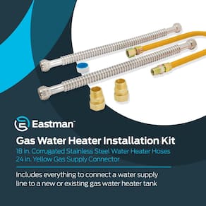 Eastman Kit de instalação de aquecedor de água a gás, mangueiras de aquecedor de água de aço inoxidável ondulado de 45 cm, conector de fornecimento de gás amarelo de 61 cm, 48280