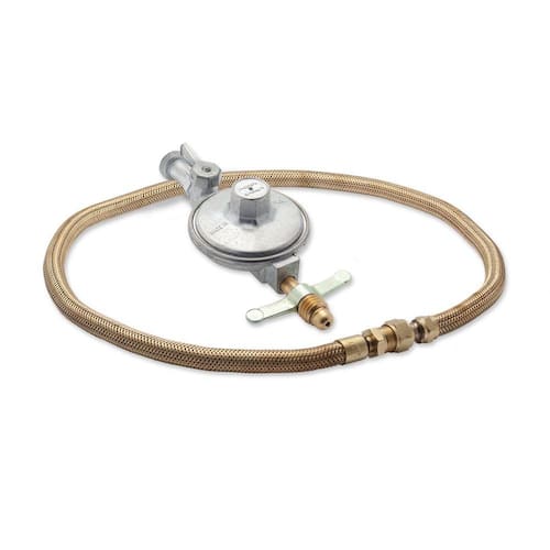 Válvula para instalação em botijão de gás doméstico, pressão de trabalho 2,8 kpa (28 mbar), sem dispositivo de segurança termoelétrico incorporado, incluindo: 01 válvula/regulador de pressão de gás com registro, 01 mangueira flexível de 1,2m e 01 embalagem de plástico.