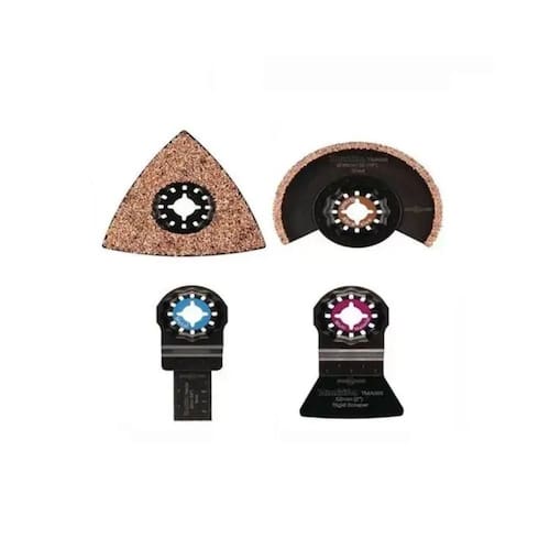 - TMA058 - Lâmina Bimetal de 20 mm de diâmetro para corte de mergulho; - TMA065 - Para cortar metal. HCS de 52 mm de diâmetro para raspagem; - TMA069 - Lamina Para argamassa (rígida) e adesivo para ladrilhos; - TMA073 - Lâmina Para argamassa, cola para ladrilhos e fibra de vidro.