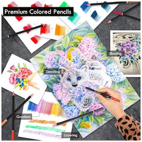 A estrutura interna compacta foi pensada para manter os itens firmes durante o transporte, reduzindo o risco de quebra dos núcleos dos lápis. O conjunto é indicado para uso adulto em atividades de desenho artístico, livros de colorir, trabalhos em papel de desenho, papel kraft e projetos de scrapbooking.