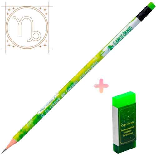 Kit de lápis preto grafite e Borracha Tris Signo Capricórnio